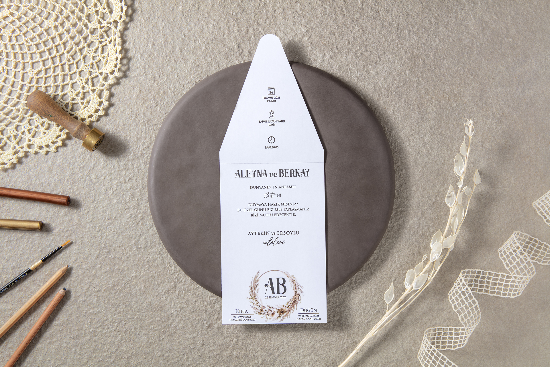 - Davetiye aksesuarları ve zarf fiyata dahildir.